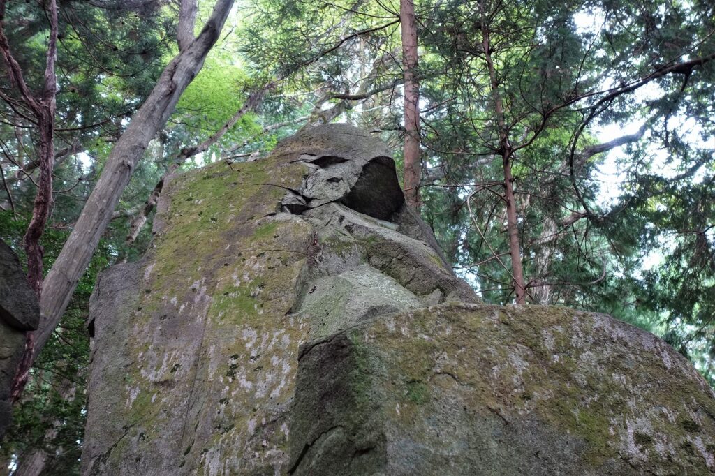其の石は高さが一丈五尺(約四・五五メートル)、周二丈(約六・○六メートル)で、石の頭に北に向って口をあけた様な部分がある。