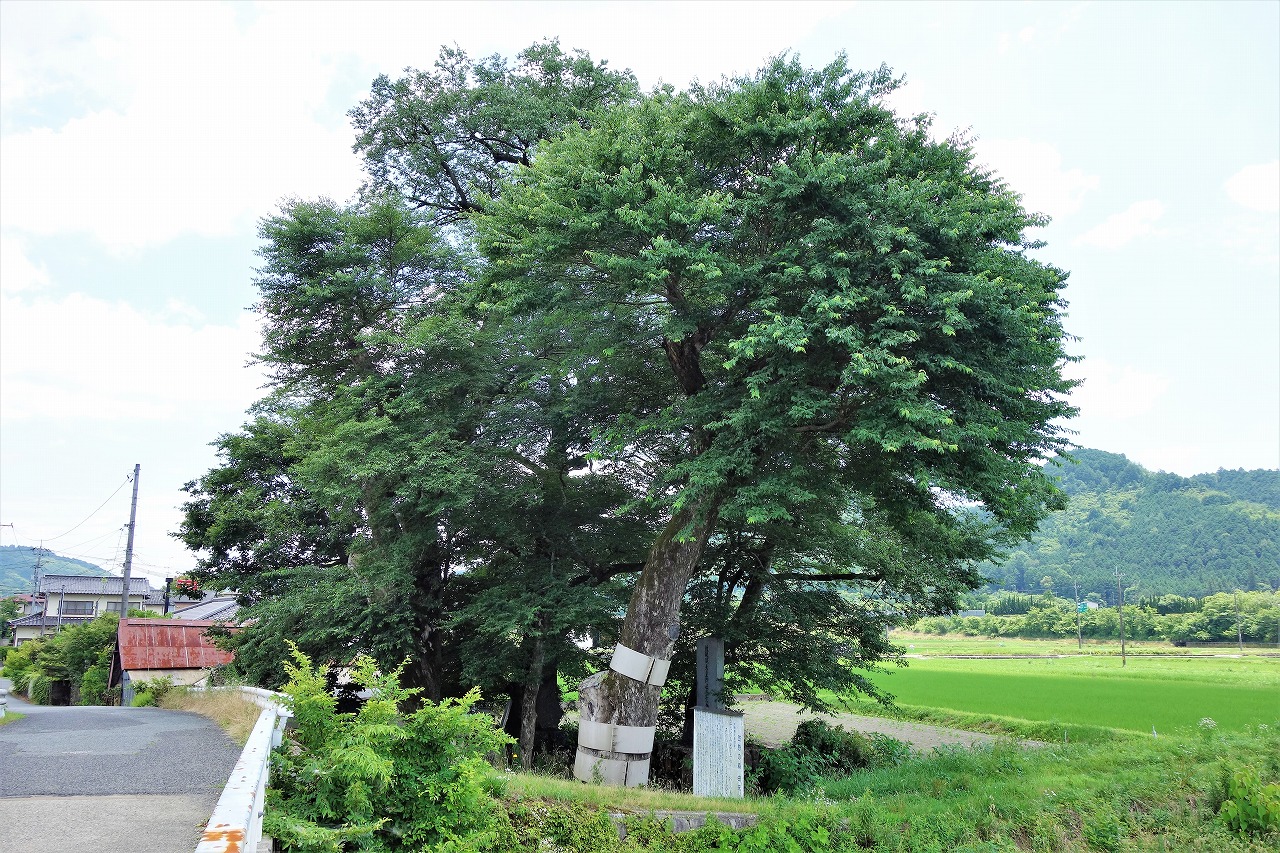 楢原村大字楢原中第二十四号国道に沿ひて梶並川の東岸にあり榎椋等の老幹数株枝状蜿蜒中天を覆ふ、往昔元弘二年後醍醐天皇御西狩の時鳳輦を此地に駐め給ひ衛士皆笠を脱して樹枝に懸け憩ひしを以て此名ありと云ふ。