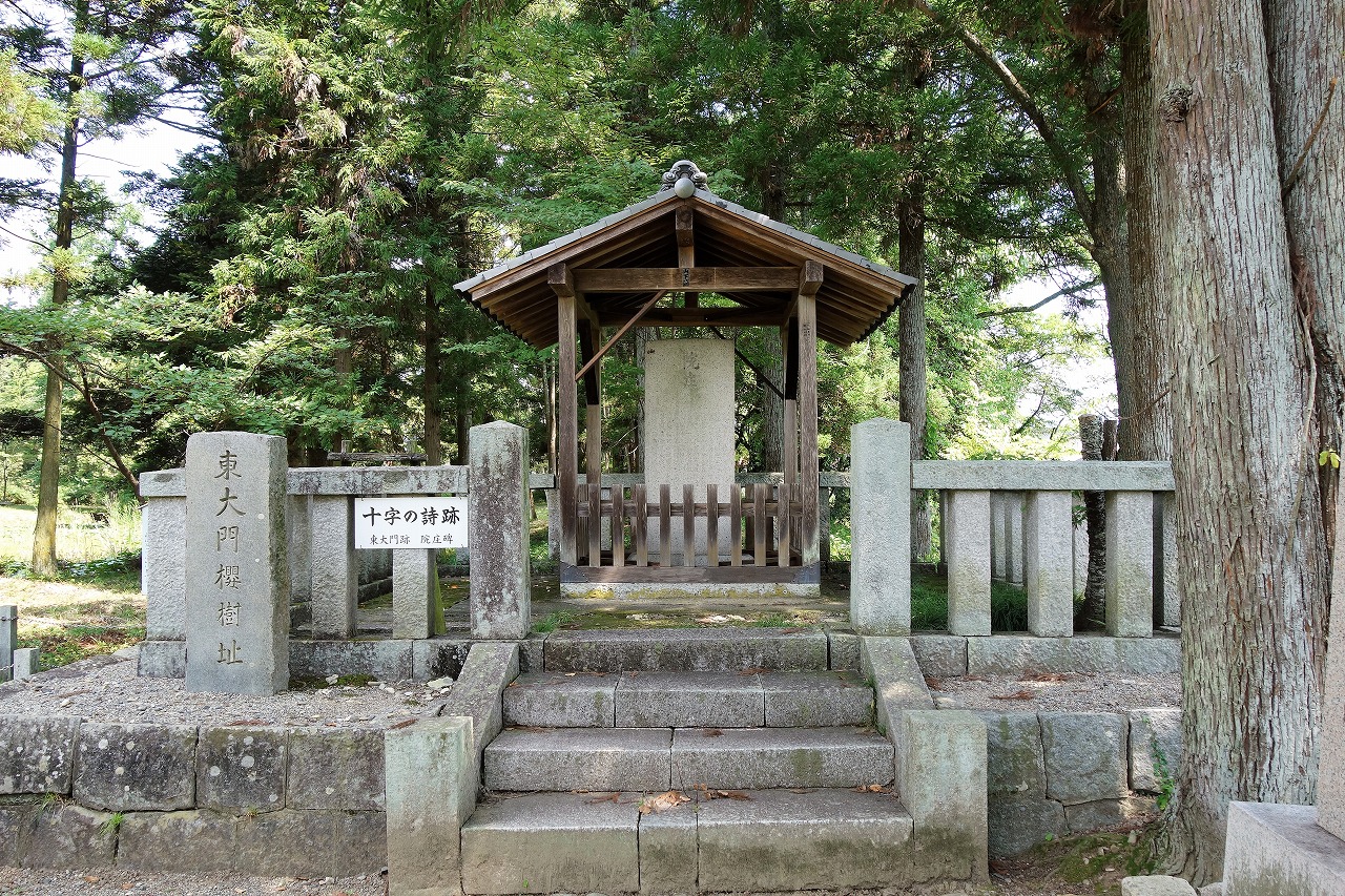 津山市神戸(じんご)の作楽神社境内に「院庄碑」がある。「東大門桜樹址」「十字の詩跡」という表示もある。