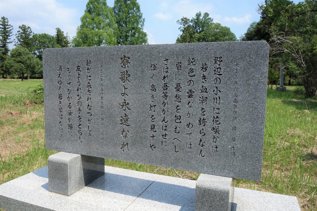 六高と三高の寮歌碑がなぜ津山の地にあるのか。説明板を読んでみよう。