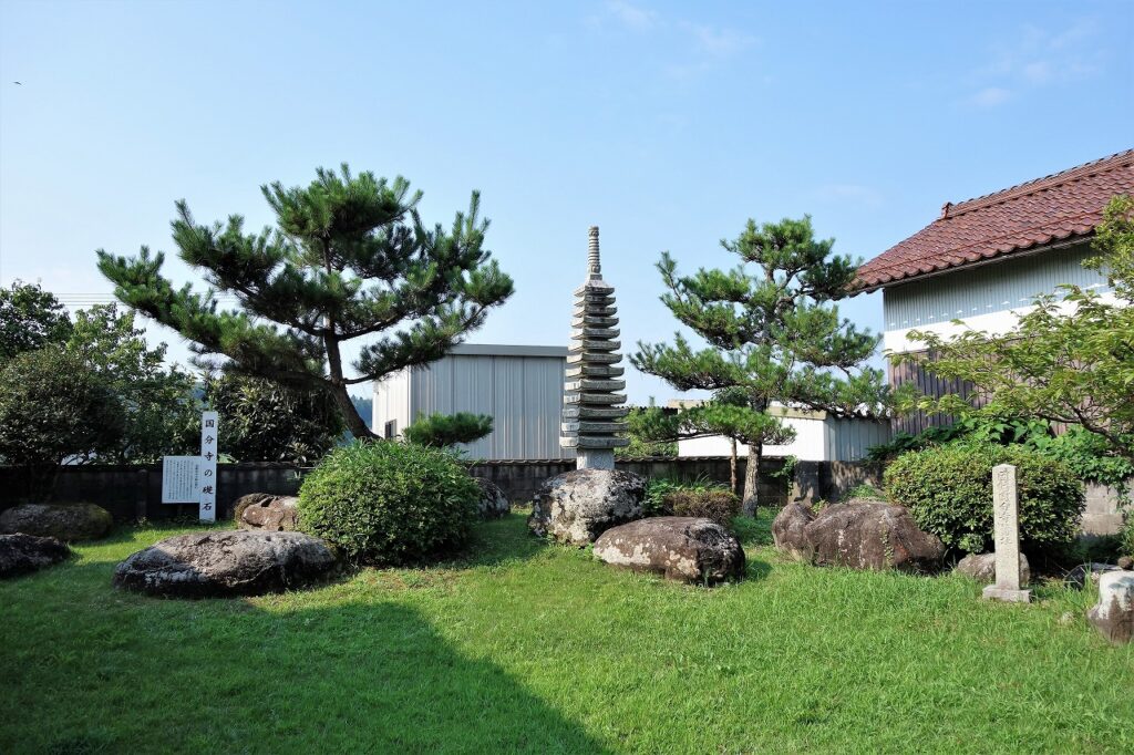 鳥取市国府町国分寺の因幡国分寺境内に「因幡国分寺旧址」と刻まれた古い石碑、そして「国分寺の礎石」と書かれた標柱がある。この礎石は市指定の保護文化財である。