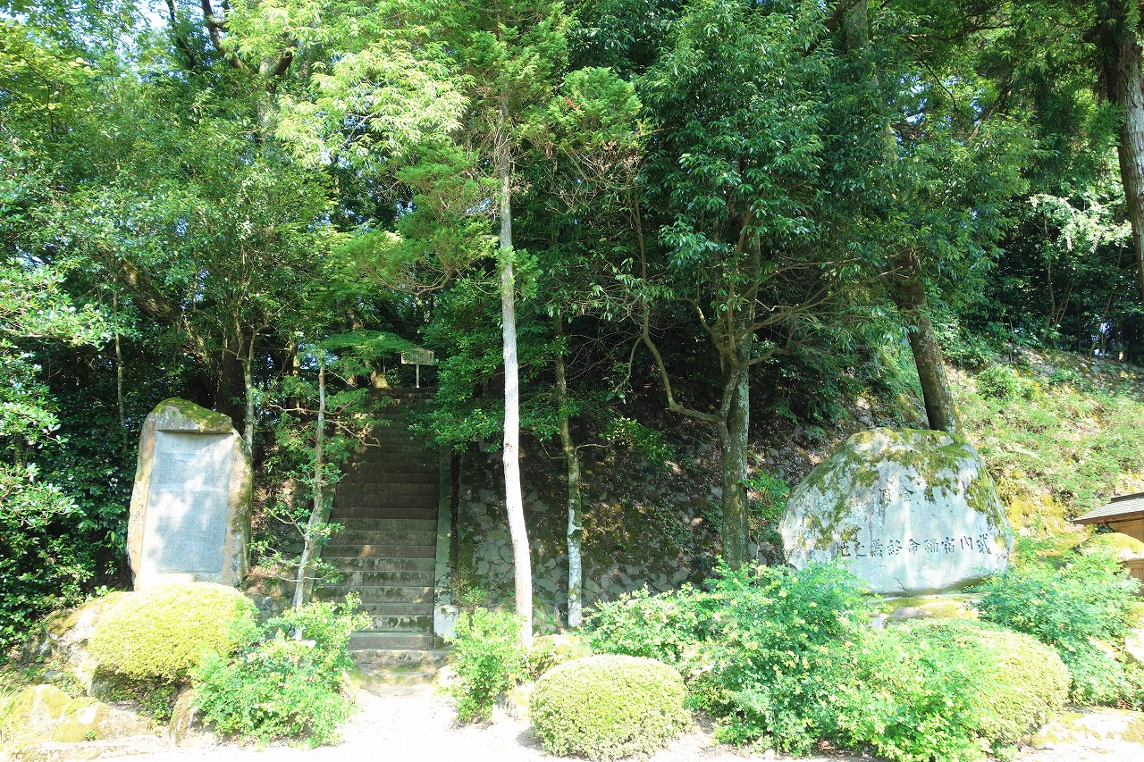 鳥取市国府町宮下の宇倍(うべ)神社境内に「亀金岡 武内宿禰終焉之地」と刻まれた碑があり、小さな丘がある。