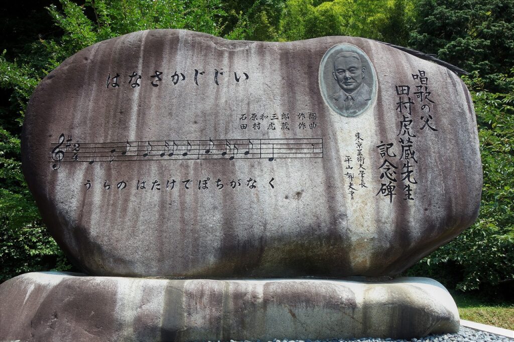 先生は実地での経験に基づき、教育効果の高い教授法を紹介した。我が国の音楽教育の基礎は先生によって築かれたといって過言ではないだろう。記念碑には代表作「花咲爺」の出だしが刻まれており、思わず口ずさんでしまうくらいに、今も歌い継がれている。