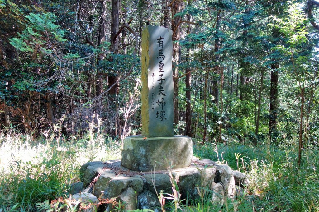 ここには有間皇子の名はないが、「高貴な人物」が登場する。三鈷の松近くに「有間皇子夫婦塚」の碑が建てられていることから、7世紀半ばの古墳の主は有間皇子とみなされているのだろう。