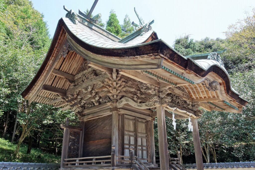 一、本殿は、明治十八年(一八八五)に造営された。近世初期の屋根形式に、江戸後期の装飾主義を取り入れた、芸術的にも技術的にもすぐれた建築物である。