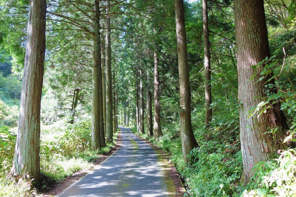 日光街道を思わせる美しい杉並木が続く。この景色を見るだけでも、遥々と時間をかけて行く価値はある。後鳥羽公園を通り過ぎ坂道を上ると峠に出る。