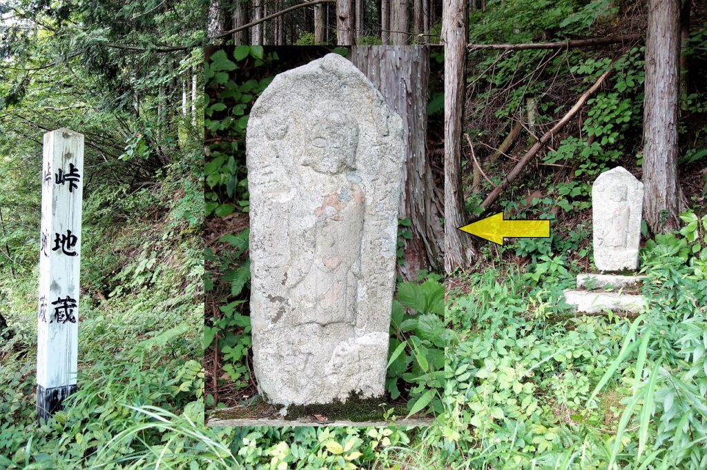 近年は高規格の林道が波打つように山中を抜けているから、峠の厳しさをあまり意識なくなっている。この峠のあたりも切り下げられ、越えやすいよう整備されている。それでもこの峠が街道をゆく人々に強く意識されていたことは、地蔵の存在から知ることができる。説明板を読んでみよう。