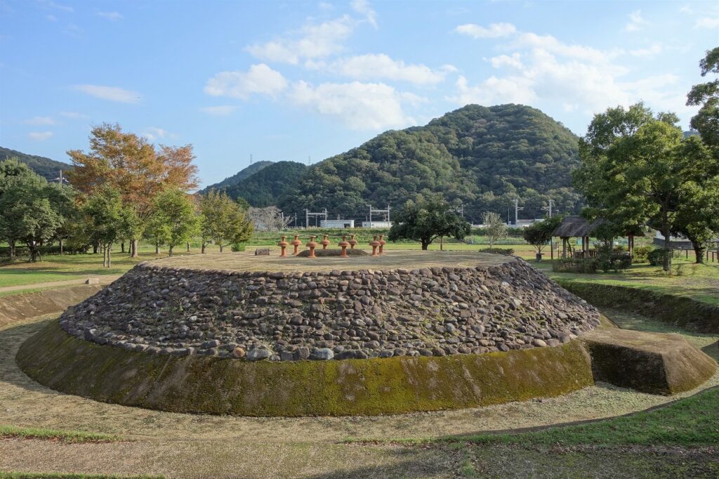 赤穂市有年原に「有年原・田中遺跡」がある。遺跡公園として整備され、多くの人が訪れている。上の写真では1号墳丘墓から2号墳丘墓を見ている。下の写真は1号墳丘墓の全体像である。