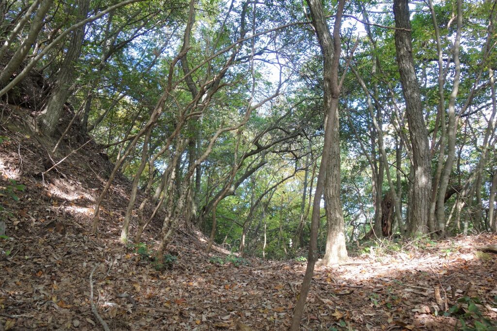 下山道を探して迷いながら、この高い切岸を何度か上り下りした。