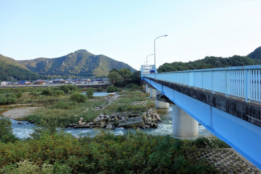 赤穂市周世と高雄を結ぶ高雄橋の隣に「根木鉄橋橋脚台跡」がある。写真奥は播州赤穂方面である。