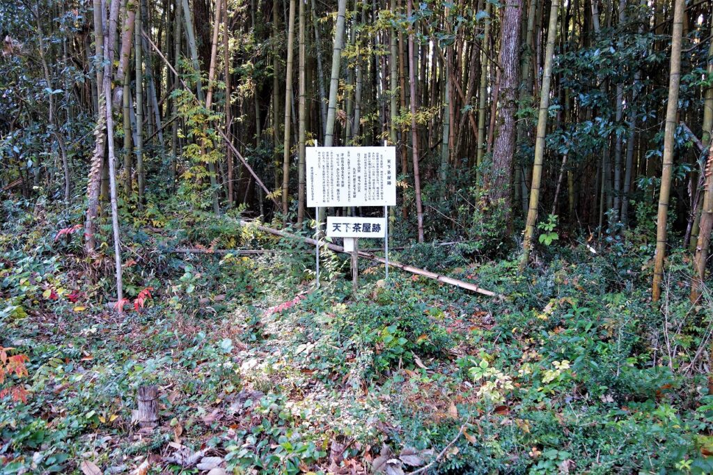 むかしの道にはきまって、峠の茶屋という道の駅のような休憩所があった。そういえば今も国道484号の菊ヶ峠には西の屋というドライブインがある。津山へと向かうこの旧道には「天下茶屋」があったという。説明板を読んでみよう。
