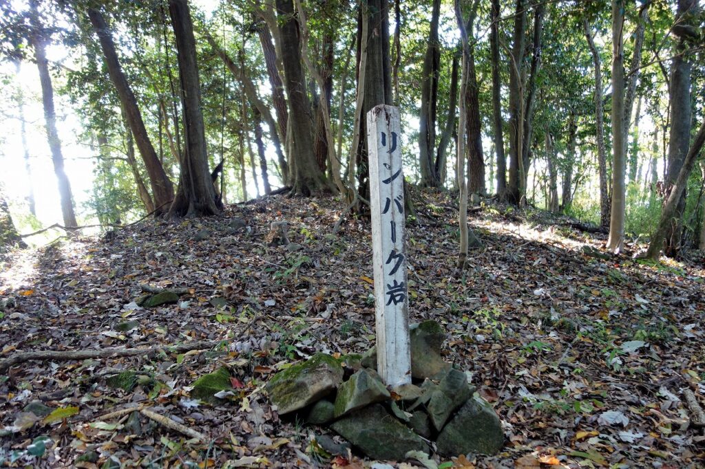 平安末期~鎌倉初期の遺跡ということだが、いったい何なのだ。まさか与那国島海底地形のように、自然地形を遺跡だと勘違いしているのではあるまいな。山頂付近には似たような石がたくさん転がっている。そのリンバーグ岩の標柱は天下茶屋から南へと向かうと見つかる。