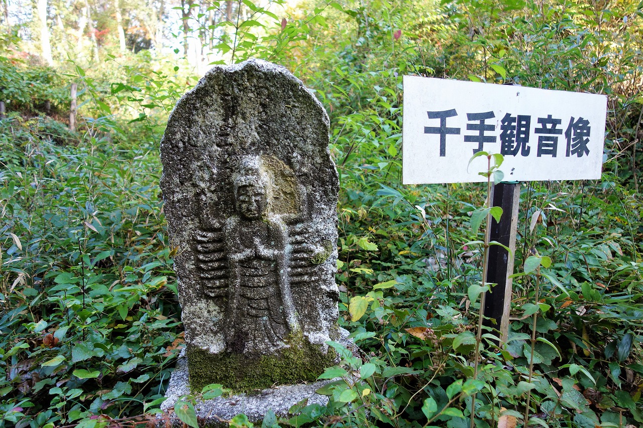 峠ではお地蔵さまではなく、千手観音像が出迎えてくれる。その向かい側には…。