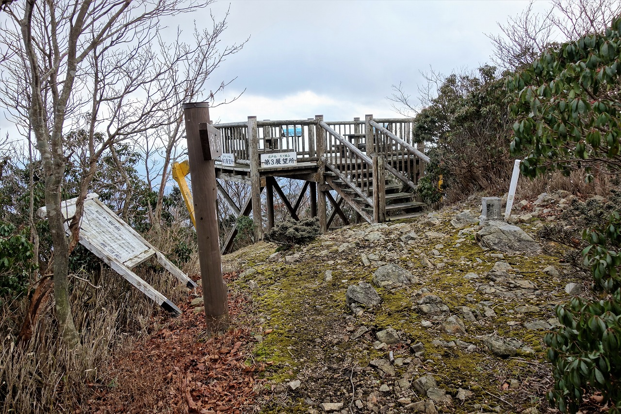 それにしても広戸仙の山頂部から敵が攻めてくるだろうか。最後の砦にしては、ちと狭すぎるように思えるが。いったい何のために爪ヶ城は存在するのか。展望所で考えることにした。すると…。
