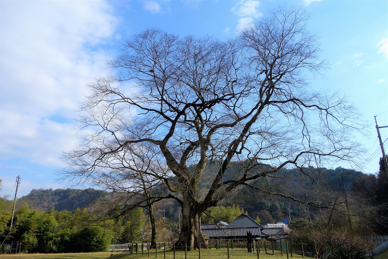 樹齢が千年だという。平安中期の生まれだ。今年からさかのぼって千年前の関白は藤原頼通、実権は父の道長が握っていた。『大鏡』の語り手である大宅世継や夏山繁樹もびっくりの長寿である。ちなみに上には上があるもので、津市にある椋本(むくもと)の大椋(おおむく)は国の天然記念物で、樹齢は1500年以上だということだ。