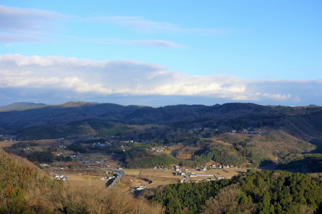 麓には国道53号が通る。岡山方面に向けて走り、津山線の跨線橋を上れば正面に三重塔が見えたことだろう。塔そのものの高さはそれほどでもないが、山上に凛として立つ姿はあたりの風景を引き締めたに違いない。