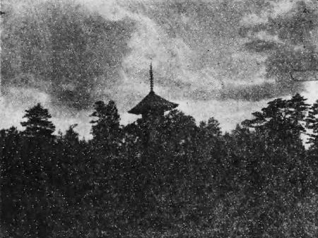 今と同じように木々に囲まれ、最上層のみ視認できる。この風景が今もあったなら、と想像する。