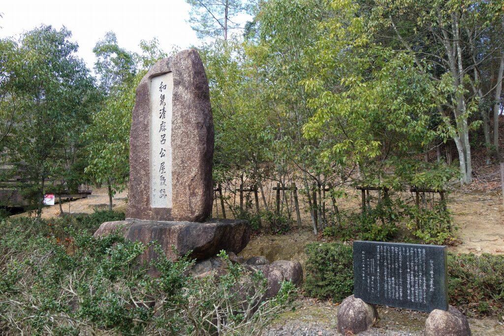 備前市吉永町高田に「和気清麻呂公屋敷跡」と刻まれた石碑がある。揮毫は長野士郎岡山県知事である。開発の大好きな知事で、吉備高原都市、瀬戸大橋、岡山空港、今はなき倉敷チボリ公園、そして根強い反対のあった苫田ダムなどが、その業績として挙げられよう。