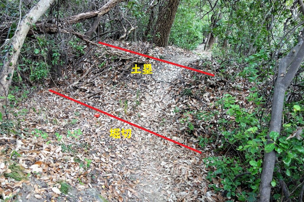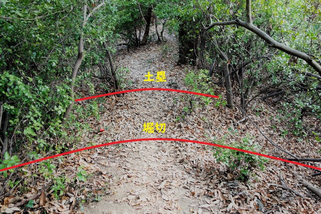 主郭の背後の尾根筋は金甲山とつながっているが、二条の堀切で遮断されている。元文二年(1737)成立の地誌『備陽国誌』に、次のように記載されている。