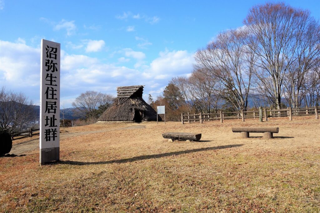 復元住居がこの遺跡のシンボルだ。平成21年度復元なので、そろそろ耐用年数は限界に近いのだろうか。竪穴住居ならどこも同じというわけではなく、登呂遺跡の平面が隅丸方形なのに対して、沼遺跡は円形である。