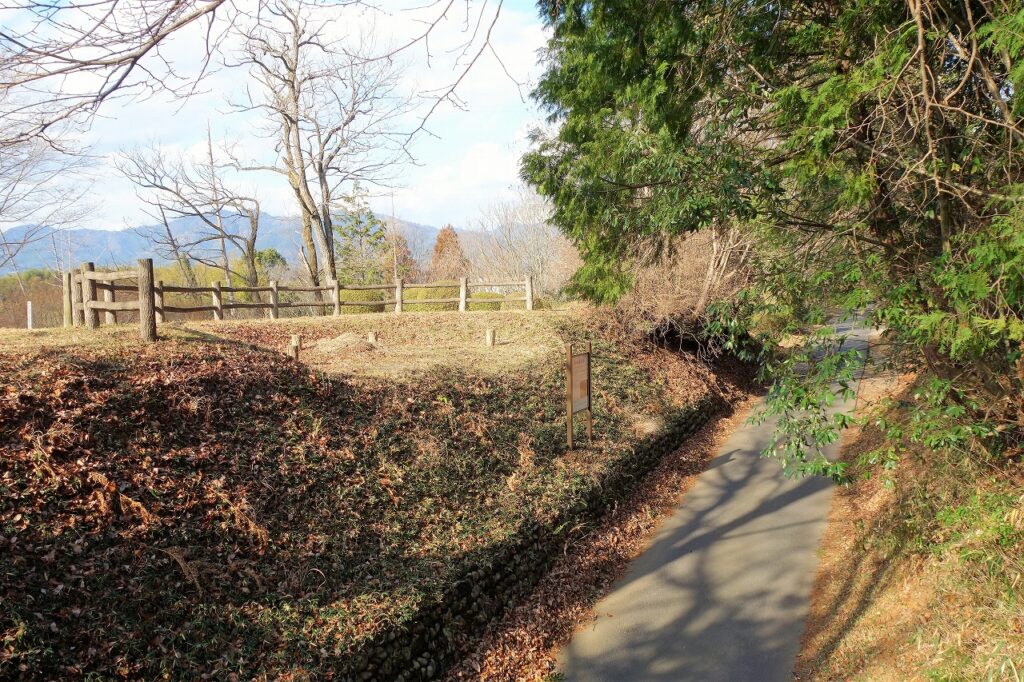 遺跡は切通しの道で東西に分けられるが、その道沿いに説明板があるので読んでみよう。