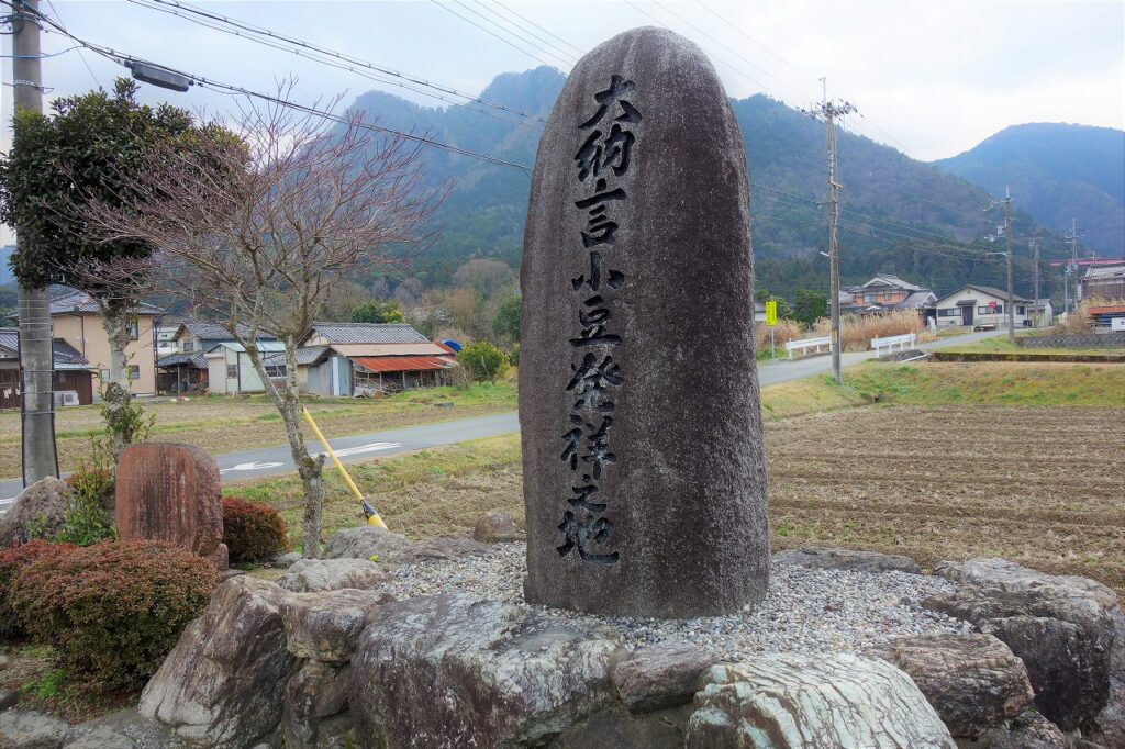 丹波市春日町東中(ひがしなか)に「大納言小豆発祥之地」と刻まれた石碑がある。