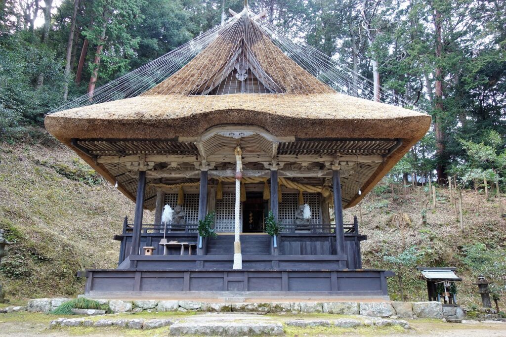 江戸中期建築という文化財の本殿は美しい茅葺だ。三本杉を仰ぎ見て社殿の前に立てば、瞑目して首を垂れるだけでなく、深呼吸もしたくなる。祀られているのはタカミムスビなのか猿を操る山王権現か。いずれにしても多くの人に崇敬されてきた歴史を誇る。その歴史は近代国家の産物である靖国よりも、もっともっと長いのである。
