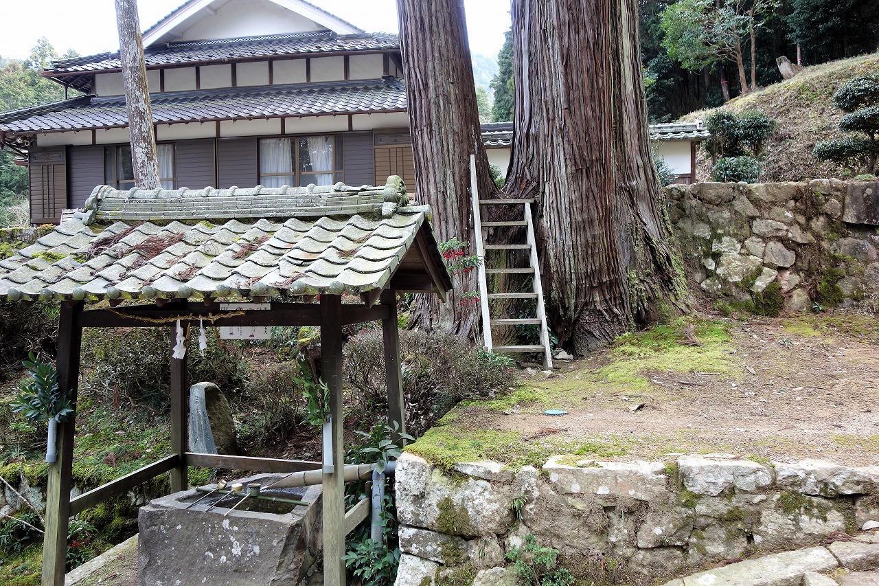 子授けに関する民俗にはいろいろあるが、「くぐる」とか「またぐ」という行為がご利益につながるようだ。どうやら穴や股がイメージされているらしい。ここでは「三本杉の根もとをまたぐ」とされている。根もととはいえ、ずいぶんな高さがあるから梯子が掛けられたのだろう。