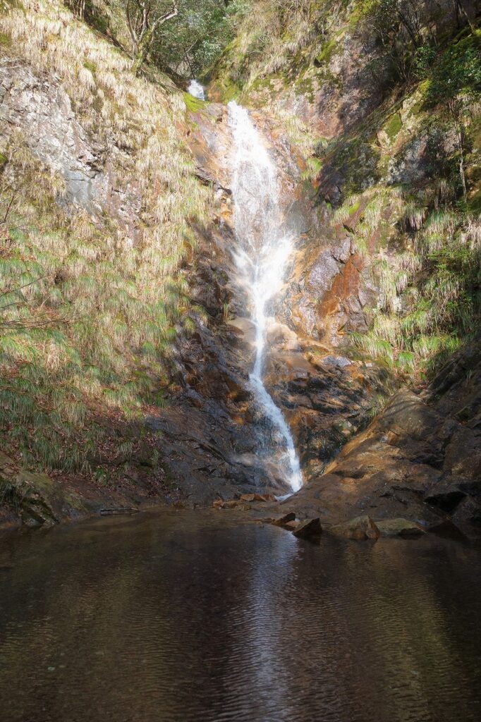 米子自動車道に摺鉢山トンネルという長大な隧道がある。4kmあるから時速100kmで走行すると何分何秒かかるかという問題を解きながら通過するのだが、トンネルを出るまでに計算できたためしがない。この日は計算から逃れるため、トンネル近くの一般道を山生川(やましょう)沿いにのぼって風流に滝見物である。