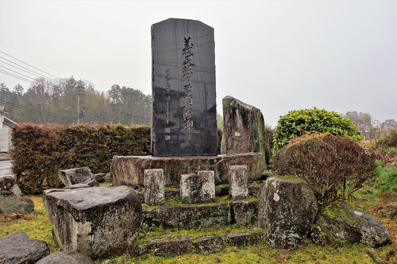 津山市下高倉西の下高倉交差点に「義民堀内君顕彰碑」と刻まれた黒光りする石碑がある。