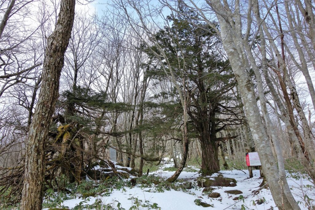 比婆山の魅力は樹林にもあり、ブナ純林は国指定、イチイ群は市指定の天然記念物である。どちらも寒さに強い樹木のようだ。イチイは仁徳天皇が位階を与えたことに由来するとか。聖域の門戸にますますふさわしい。