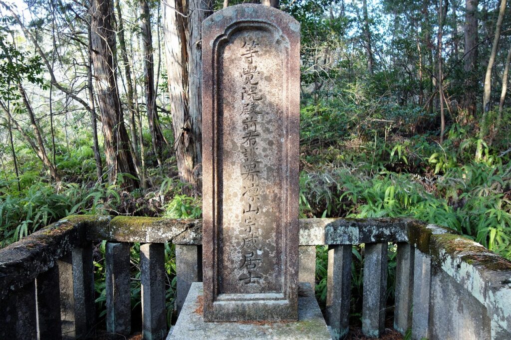 左側(写真下)は九代博道、「等覚院殿前布護署凛山宗威居士」と刻まれている。やはり隼人と名乗っていた。御津郡中田村の別邸に学問所を設立し、家中子弟の文武修練の場を提供した。『岡山県教育史』上巻には次のように記されている。