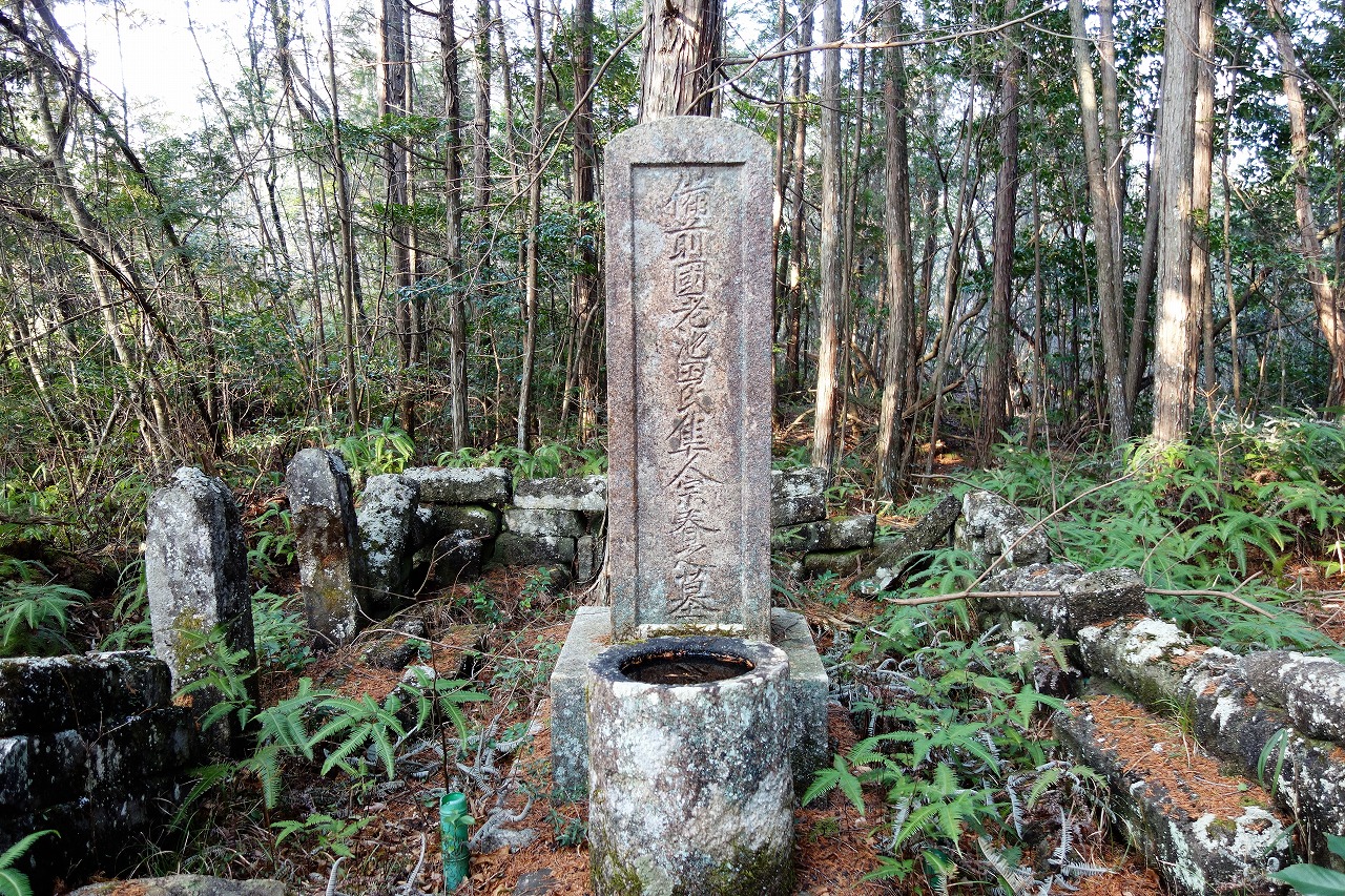阿光山には三基の墓碑がある。正面(写真上)が六代宗春、「備前国老池田氏隼人宗春之墓」と刻まれている。若くして亡くなったようだ。右側(写真中)は八代俊清、「緫持院前布護署徳叟良功居士」と刻まれている。布護署とは隼人司の唐名である。豊川市御津町西方松本(みとちょうにしがたまつもと)の忠勝寺に「森寺忠勝の墓」がある。これは元文五年(1740)に池田隼人俊清が、この地で没した先祖を悼んで建てたものだ。俊清が亡くなったのは明和二年(1765)。