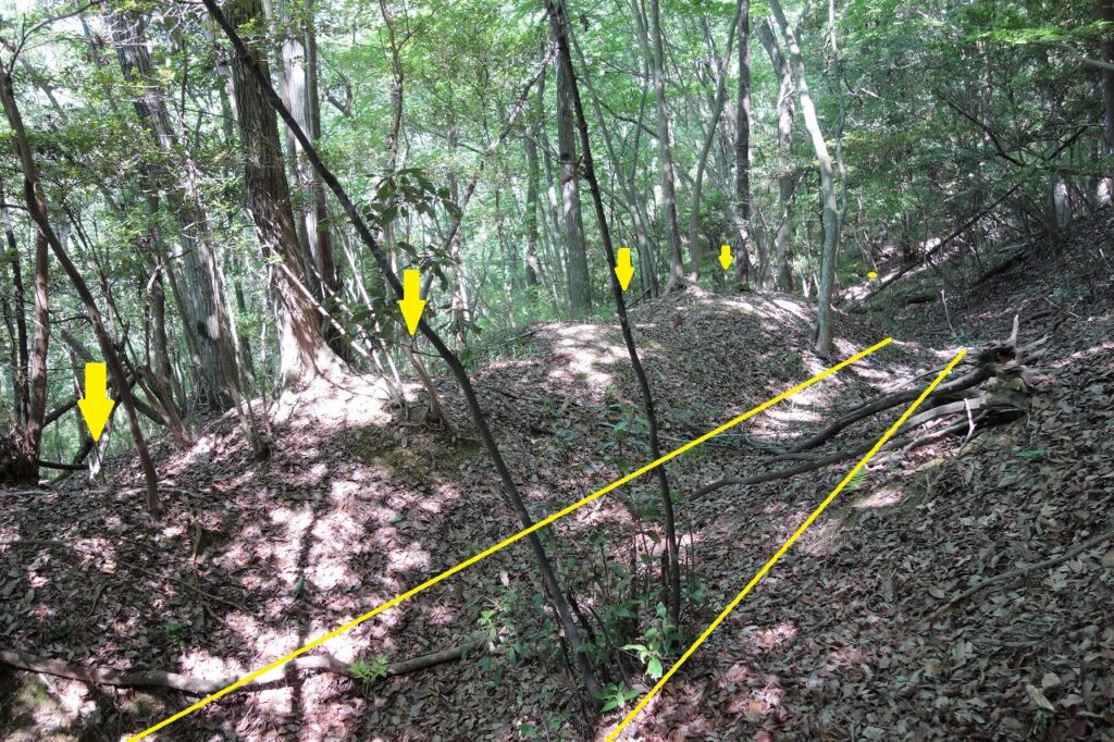古墳も山城も終末期にもっとも技巧的になる。その特色は古墳では精巧な石組、山城では横堀や畝状竪堀に見られるように思う。本日紹介する山城は大規模かつ見応えのある造りで、つづら折りの険しい登城路を息切れしながらも登る価値がある。さっそく紹介しよう。