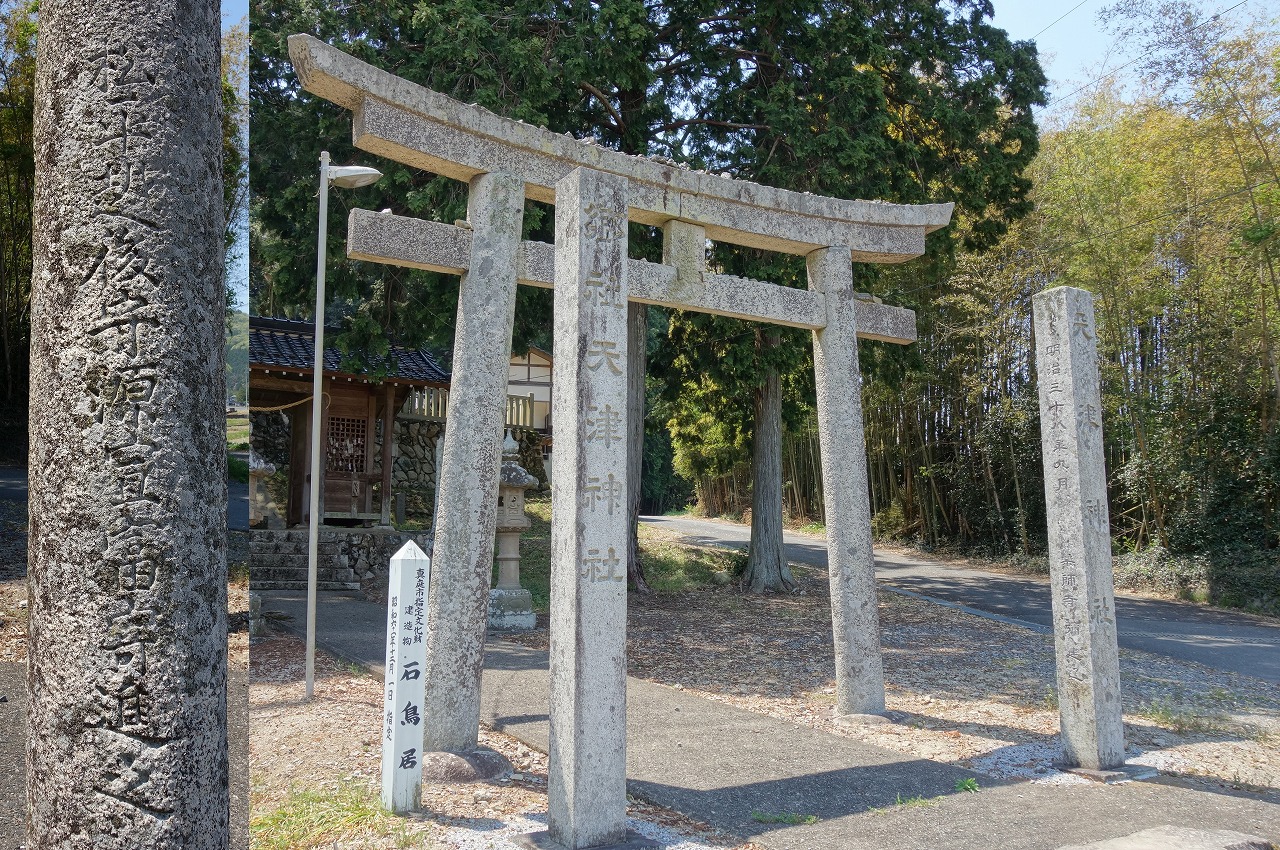 真庭市高屋の天津神社に市指定文化財の「石鳥居」がある。