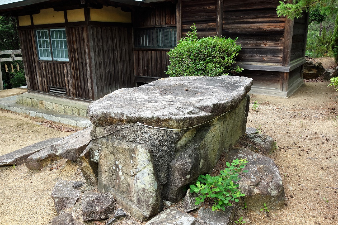 首部に温羅の首を埋めたとすれば、ここ谷万成に埋葬されたのは妻の首ということか。そして、それぞれの首は掘り返され、この石棺に埋葬し直されたのだという。ならば、吉備津神社の御釜殿の下に埋められたという温羅の首は何なのか。