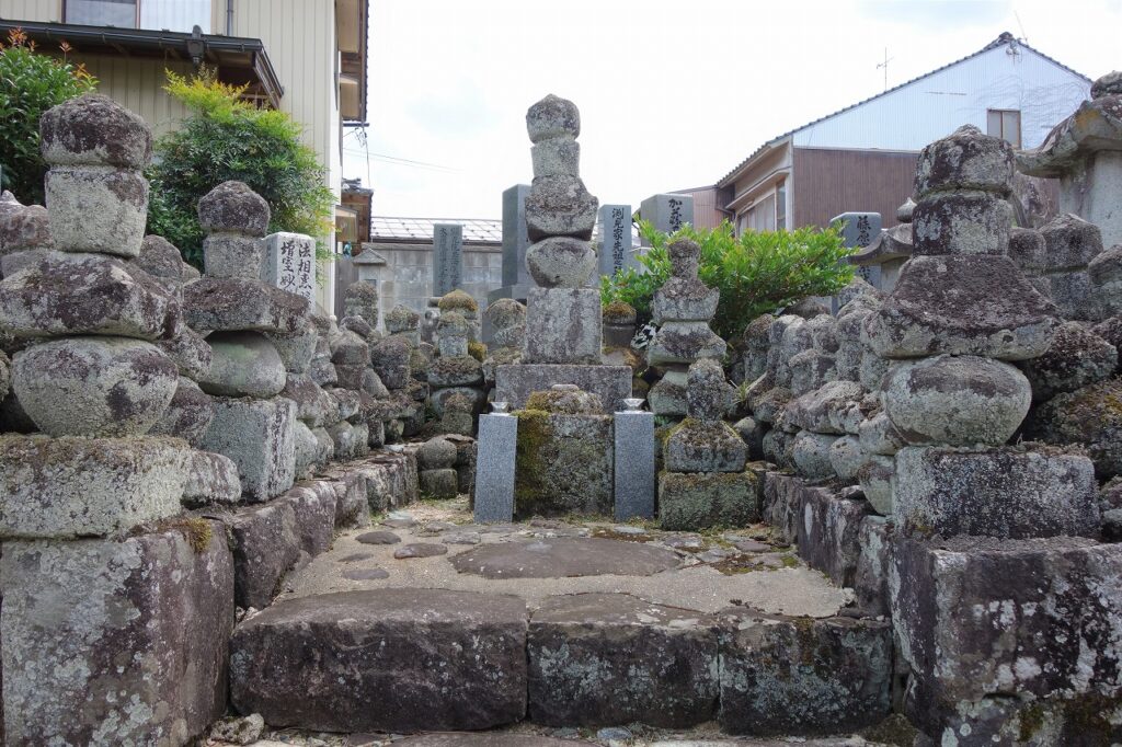 慶長五年(1600)関ヶ原の役に鬼ヶ城主木下重堅らは西軍に味方すべく出兵したが、途中、西軍大敗の報が届き、敗走する西軍に従い大阪天王寺に隠れたが、その後、自刃した。家来によって遺品、遺髪が西方寺に葬られ、「宝勝院殿前備州大守有山道無」と諡をした。重堅の大五輪の左右に並ぶ七、八十基の小五輪は、天王寺で自刃した家来を含む多くの戦死者であろうか。