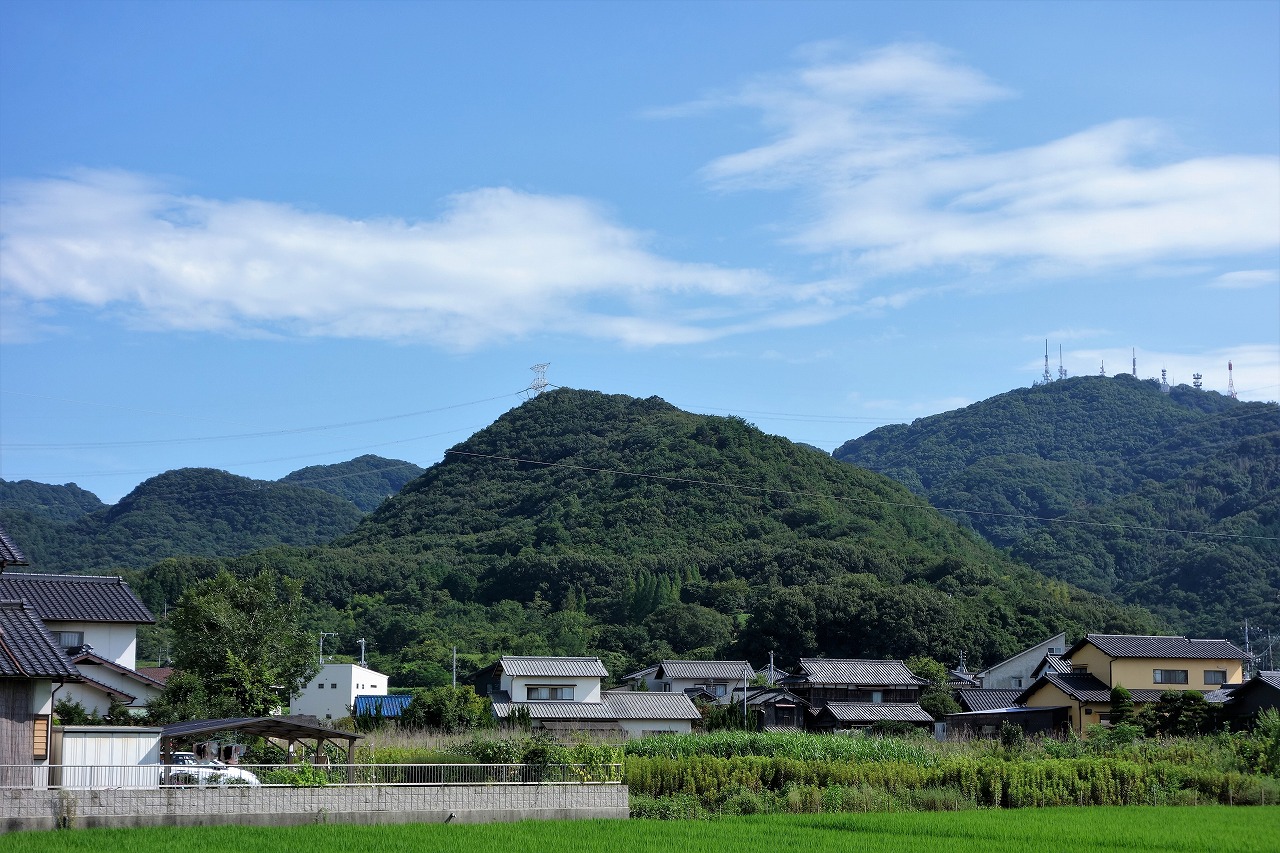 岡山市南区郡の城山に「古城山(こじょうやま)城跡」がある。右手には雄峰金甲山が見える。