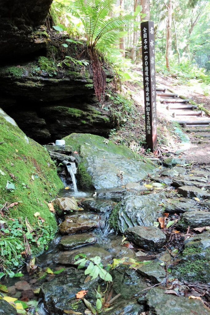 滝見道の途中に環境省選定名水百選の「岩井」がある。暑い時期に水のある風景に出会うとホッとする。これも透水層と不透水層のおかげだ。鳥取県との境に降った雨は地表を流れて滝となり、あるいは地下に浸透して名水となり、また一つとなって川となる。崇徳院の「われても末に 逢はむとぞ思ふ」を思い出す。