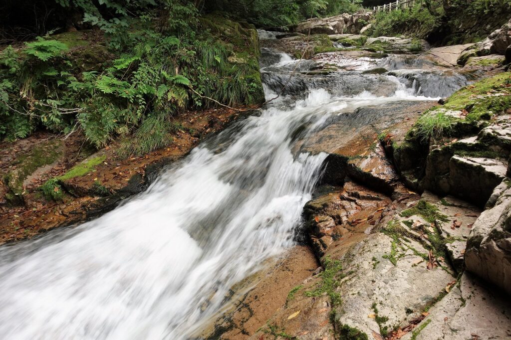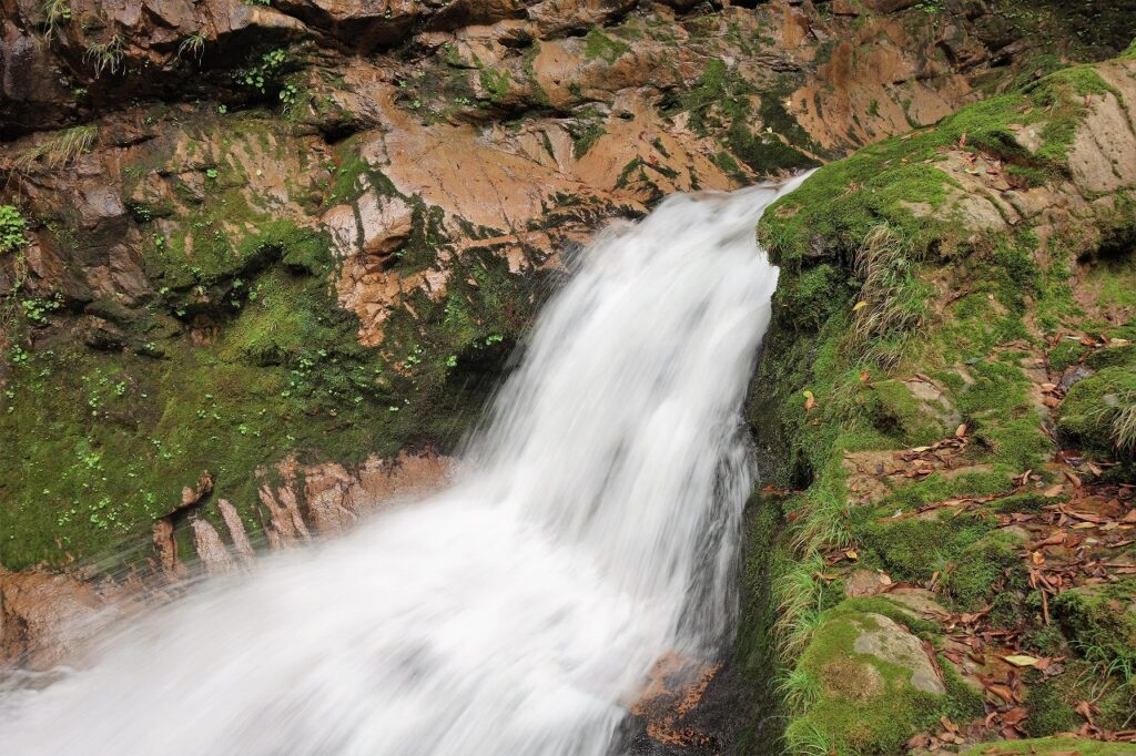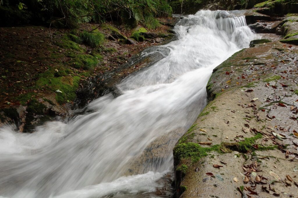 本日紹介するのは斜面を滑るように流れる滑瀑である。長大な滑瀑のため1枚の写真に収めることができない。さっそく御覧いただこう。