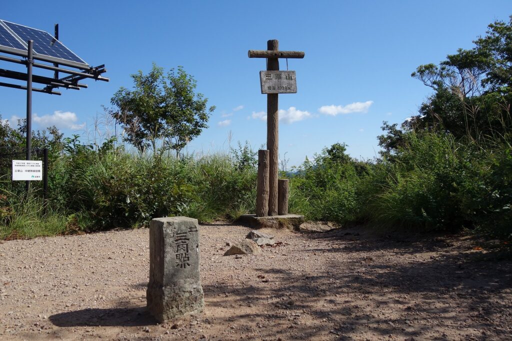 「三草山城臺標」と刻まれた古い記念碑がある。
