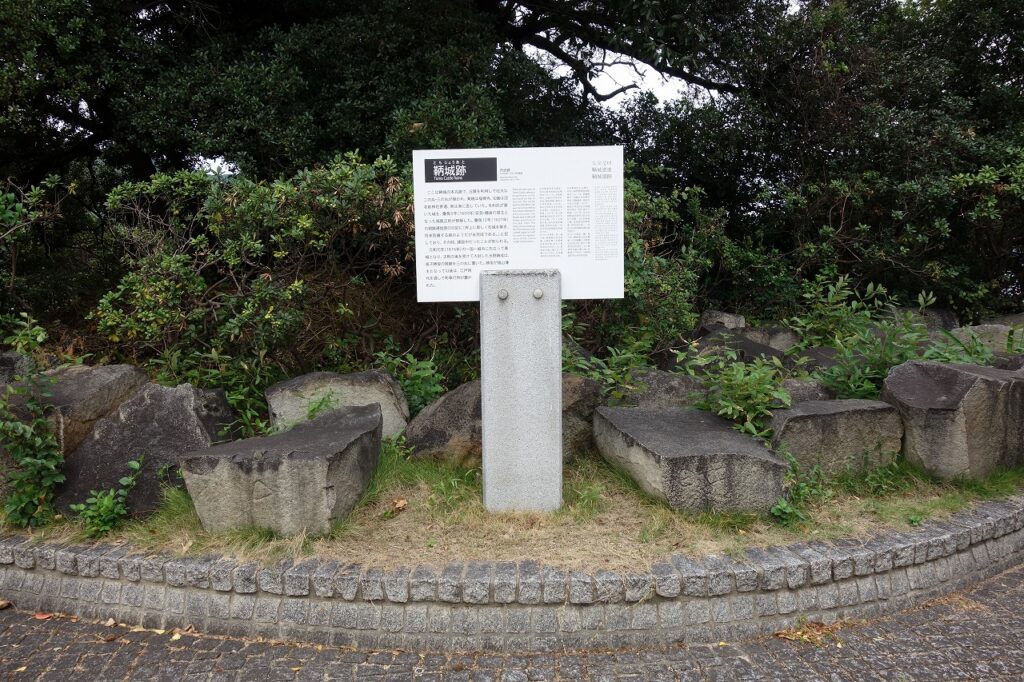駐車場から階段を上がると見事な石垣があり、ここでも刻印を見ることができる。説明板を読んでみよう。