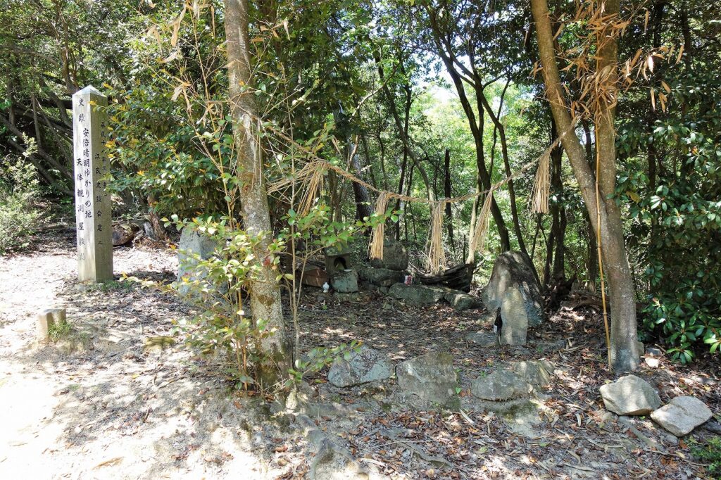 浅口市鴨方町小坂東に「史蹟 安倍晴明ゆかりの地 天体観測屋敷跡」と刻まれた標柱がある。