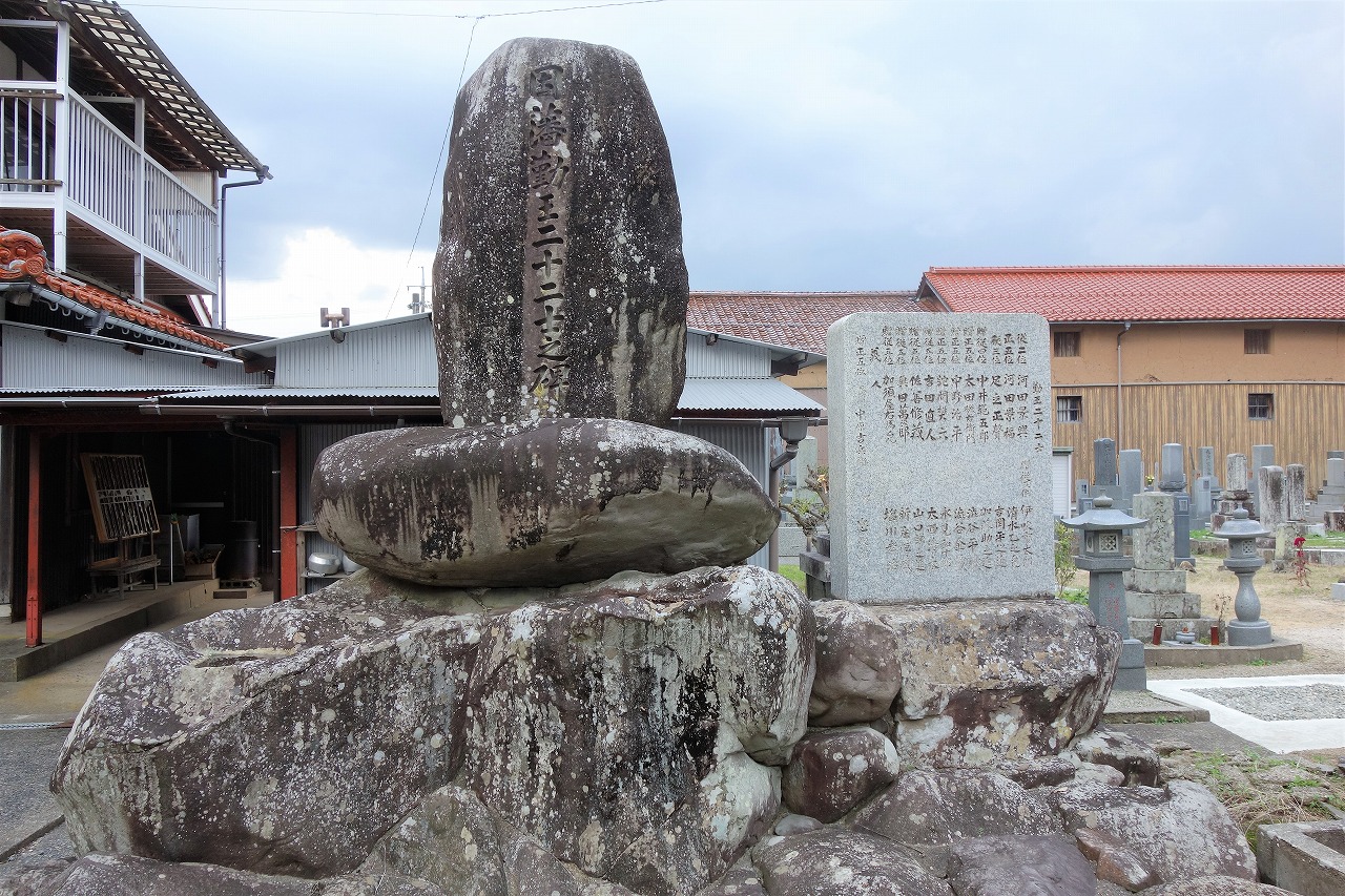 傍らの副碑に「勤王二十二士」の名前が刻まれ、うち12名には与えられた位階も示されている。さらに「義人」として親子2名(吉兵衛、忠次郎)の名があり、親は贈位されている。「勤皇」に励み「義」のために行動し、明治国家から功績を認められた人々のようだ。とのような人物なのか、副碑裏側の碑文を読むことにしよう。