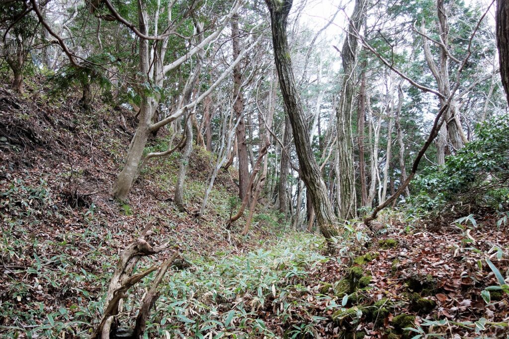 城主としては有元佐顕の名が伝わっている。まっすぐな尾根を歩いていると、街道を進んでいるかのような錯覚がする。