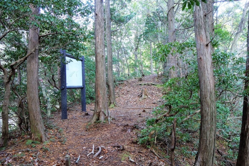 南側は木が伐採され、絶景ポイントとして整備されている。たぶん眺めはいいはずだ。説明板が二つある。読んでみよう。