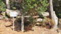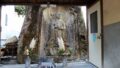 忠継廟の隣に弟忠雄の「芋墓」がある。確かにサツマイモか里芋の親玉のようだ。墓塔としては無縫塔という。古さを感じさせない美しい墓碑で、犬島産の花崗岩とのことだ。左隣の巨大な板碑のような慕塔は殉死した加藤主膳正、右の五重塔は奥方の芳春院の慕塔である。五重塔は加工しやすい豊島産凝灰岩でできている。岡山市教委の説明板を読んでみよう。
