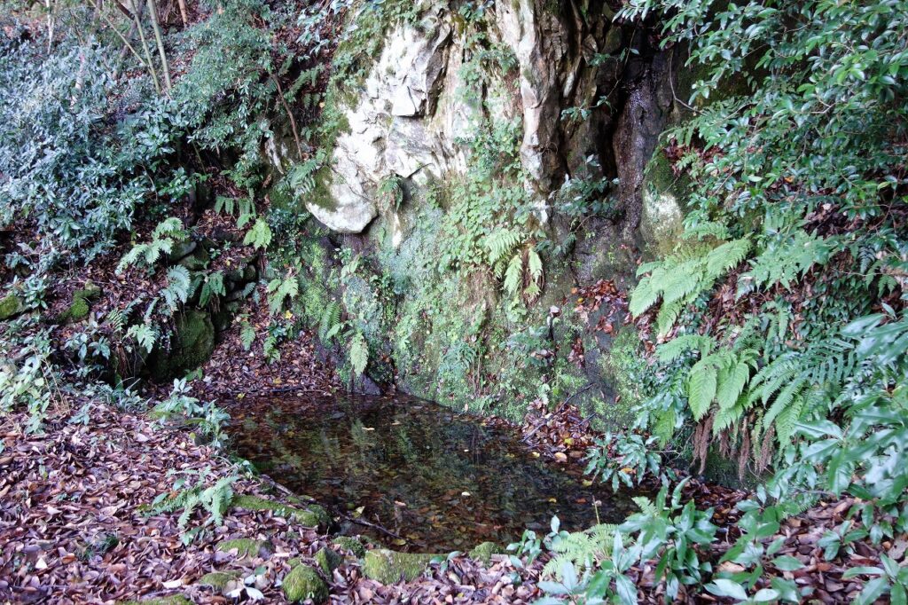 水浴び場ではなく、実際には飲料水を確保するための井戸だったのだ。城兵だけでなく下流農民にとっても貴重な水源だったのだ。こうした水源にたいする信仰心も羽衣伝説を支えていたのかもしれない。