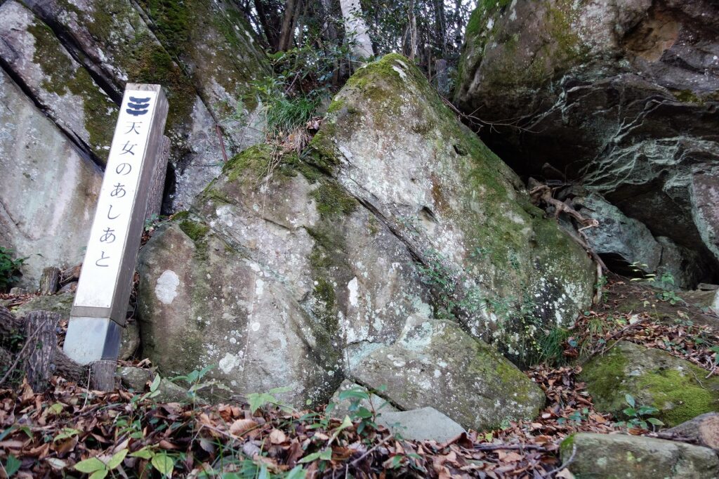 羽衣石の近くに「天女のあしあと」がある。身軽な天女がタタッと駆け上ったような窪みがついている。では水浴びした場所はどこなのだろうか。