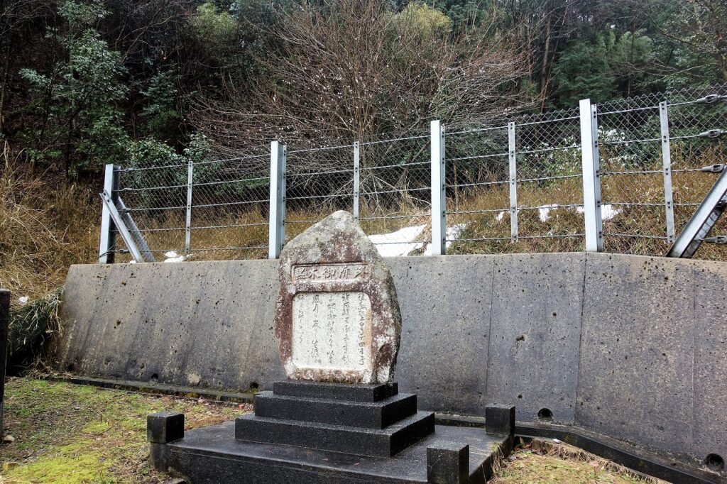 なお親王の配所であった黒木の御所の跡を示す碑が墓所の南前現在高屋厚生年金住宅の横に建てられています。